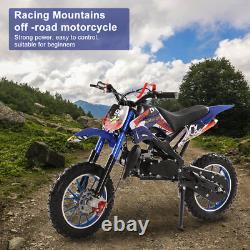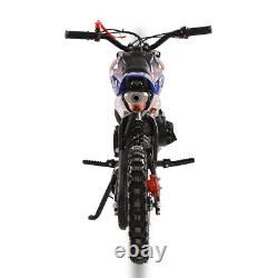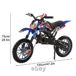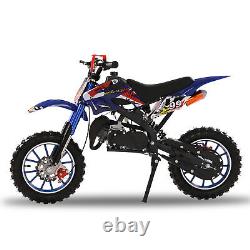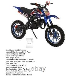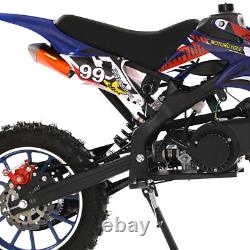 DIRT BIKE 49CC 2-STROKE GAS POWER MINI DIRT BIKE MOTOCROSS PIT BIKE, MOTORCYCLE. Description: Cool Appearance: The design seems so cool, the painting process plastic housing, fashionable appearance, shock absorption springs, and even the high seat cushion design. This cool mini motocross ride-on is ready to inspire fun off-road action. Front Rear Disc Brakes, Handlebar Switch & Off-road Tires: The strong dual front/rear disc brake as a guard in our brake braking offers maximum control to protect you for balance from over speed at any motorcycle skill level. With 12 inch anti-slip and wear-resistant inflatable off-road tires, the motorcycle is relatively stable and safe to ride.