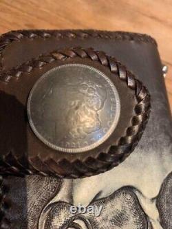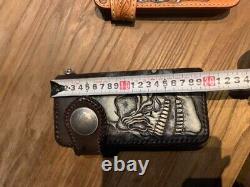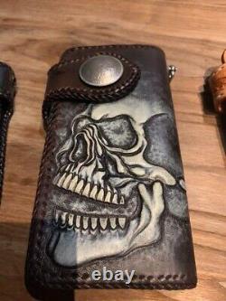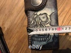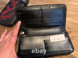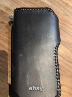 Handmade Biker leather Long wallet Black pocket engraved Japan Made Motorcycle