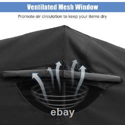 Comes with 2 ventilated and moisture-proof mesh windows, preventing condensation buildup Specifications: Color: Black Material: Metal, 600D Oxford Cloth Overall Dimension: 342 x 137 x 190 cm (L x W x H) Net Weight: 26 kg Package Includes: 1 x Motorcycle Shelter 1 x Instruction Specifications.