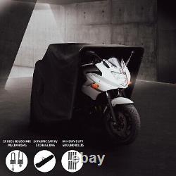 For added peace of mind that the tent will keep your scooter safe, it benefits from an anchorage system that is fitted using extra-long 79mm x 8mm heavy duty ground bolts. With a secure locking mechanism integrated on each side of the frame and 2 padlocks and keys included, ######xA0;you can be certain your motorbike is nice and safe. Supplied with a compact carry bag you can conveniently transport and store your shelter. With this motorcycle tent your bike will be kept safe, clean, and dry so it####x2019;s always ready to ride. ####x200B;####x200B;####x200B;####x200B;####x200B;####x200B;####x200B. ####x2714;####xFE0F; 1 x Protective Motorbike Tent. ####x2714;####xFE0F; 1 x Hard Wearing Fabric Carry Storage Bag. ####x2714;####xFE0F; 2 x Secure Padlocks with Keys.####x2714;####xFE0F; 8 x Heavy Duty Ground Bolts. Waterproof Protective Cover######xA0;####x200B;####x200B;####x200B;####x200B;####x200B;####x200B;####x200B. The 600D oxford fabric cover is not only super waterproof, but it provides much needed UV protection to ensure your bike is shielded from the elements. This helps to maintain its beautiful appearance and ensures it's always ready to ride.