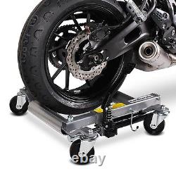 Dolly Mover Indian Chieftain ConStands Heavy Duty. Motorcycle mover for the rear wheel for maneuvering of motorcycles and scooters of all kinds. Suitable for tires up to a width of 300 mm. The maneuvering-aid is simply moved to the rear wheel, by pressing the pedal, the wheel is clamped and lifted.