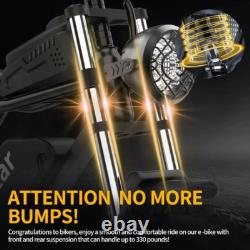 The Q20 Mini Fat Tire e-bike features 20-inch shock-absorbing pneumatic tires, a front and rear suspension fork, a 5-level LCD display, an ergonomic sports seat, front and rear disc brakes, and an ultra-bright LED headlight. With these features, it is perfect for daily commuting, conquering any terrain and carrying a maximum load of 150 kg.