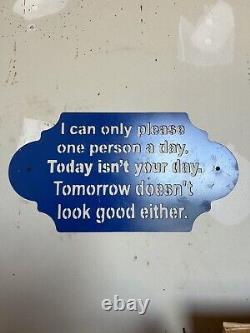 Choose your sign (see pictures). Signs can be displayed indoors or outside.