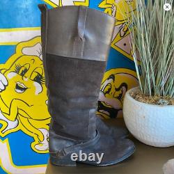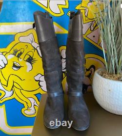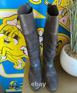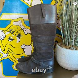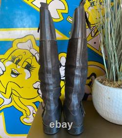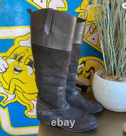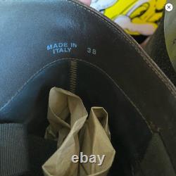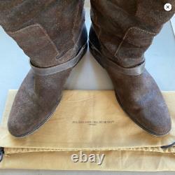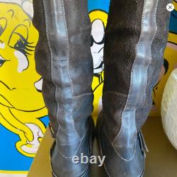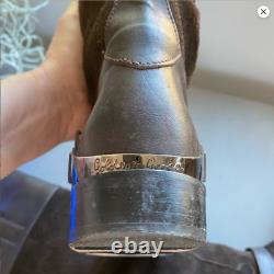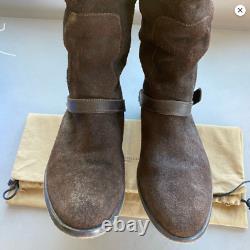 Bottes de randonnée en cuir et daim marron foncé usé Golden Goose avec quincaillerie argentée en taille italienne 38 ou 7,5. 17" au point le plus haut et 15,5" au point le plus bas. La semelle extérieure mesure 10" de long.