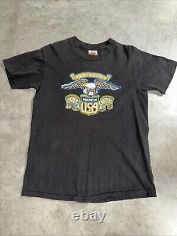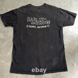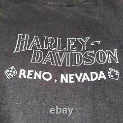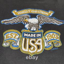T-shirt vintage Harley Davidson des années 80 fabriqué aux USA avec emblème d'aigle à couture simple Reno. Superbe graphique devant et derrière.