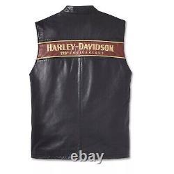 Gilet de moto en cuir véritable pour hommes Harley Davidson 120e anniversaire. Cette veste est fabriquée exactement comme du cuir haut de gamme. Elle a été soigneusement conçue et nous l'avons fabriquée avec une attention particulière aux détails. Fait à la main : - Conception brillante, découpe professionnelle et couture premium tout au long selon les normes internationales. Excellent choix pour les occasions décontractées et les fêtes.