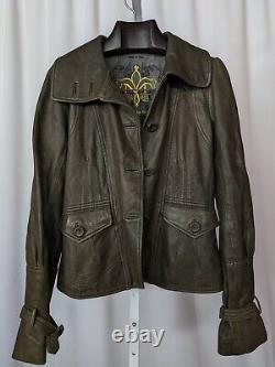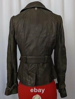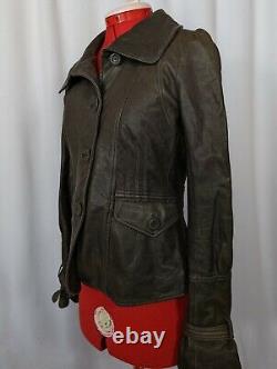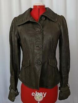 Mackage Col Entonnoir en Cuir Marron Doublure Herringbone Taille Petite
