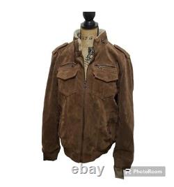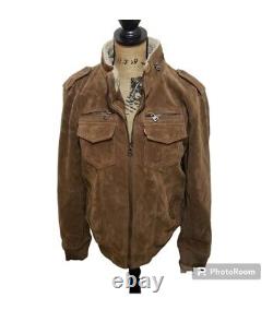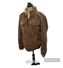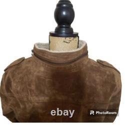 Fabriquée en doux cuir suédé marron, cette veste dégage luxe et sophistication. Elle est parfaite pour les occasions en plein air et présente un look unique de Trucker Rancher qui ne manquera pas d'attirer les regards. La veste est dans son état d'origine, ce qui en fait un bijou rare à ajouter à votre collection.