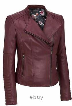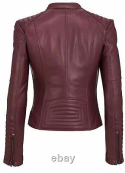 Veste de moto en cuir d'agneau pour femmes, tenue élégante pour soirée/club, créateur.