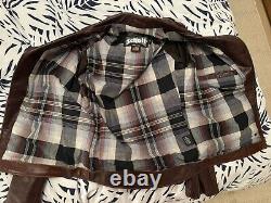 Il y aura quelques légères variations d'une veste à l'autre, ce qui améliore l'apparence naturelle du processus de vieillissement. Col et revers à pression. Poche verticale interne à pression. Ceinture mi-longue avec fermeture à boucle et pression pour maintenir en place.
