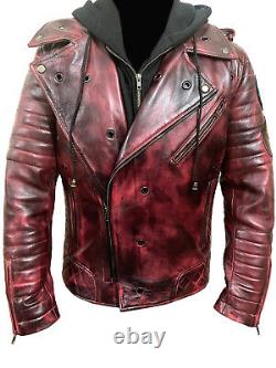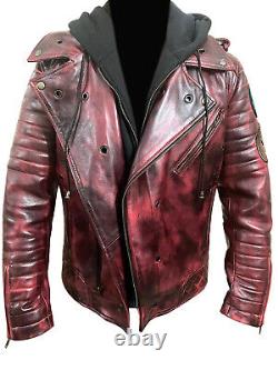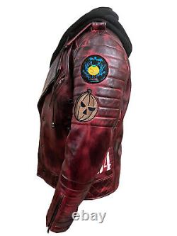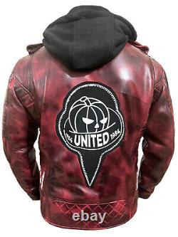 Michael Kiske Helloween - Veste en Cuir Rouge à Capuche Biker Pumpkins United. Cuir d'Agneau de Haute Qualité.